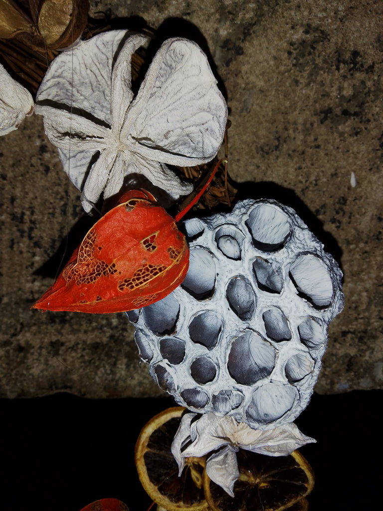 A handcrafted, autumn wreath made from dried natural materials. Zero plastic. Environmentally friendly. It can be hung on a front door, an external interior door, such as a porch door, or wall, such as a wall in a conservatory.